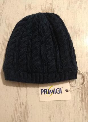 Теплая, мягусенькая новая шапка. Снаружи - крупная вязка, внутри- толстый флис. Размеры подала на фото. Шапка легко растягивается до 44см (обхват головы). Приятный тёмно-синий цвет, так что не придется часто стирать. Идеально подойдёт мальчику.