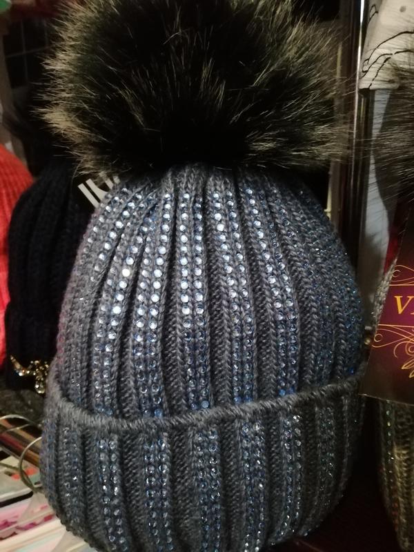 Шапка вязка с бубоном на флисе для девочек Высота 21, ширина 23 тянется