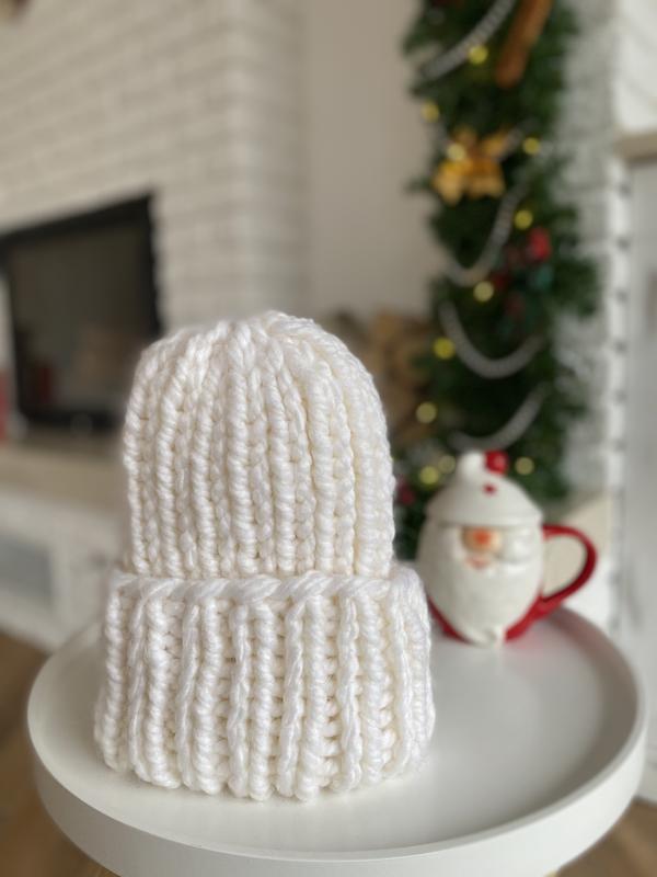 Об’ємна тепла шапочка білого кольору Ручна робота Напівшерсть