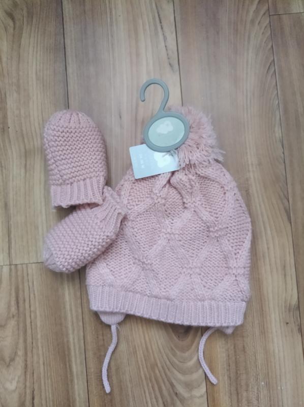 новая шапка, размер 24-36 мес., варежки- мешочки без места для большого пальца.