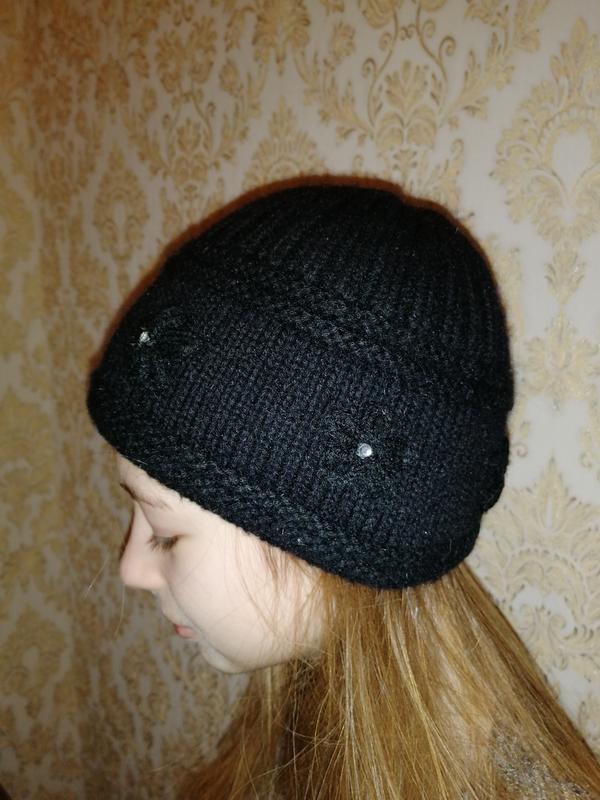 Шапка зимняя вязанная черная, теплая. Двойная. Состав- шерсть, акрил. Замеры: Обхват - 47-52 см Глубина - 20 см