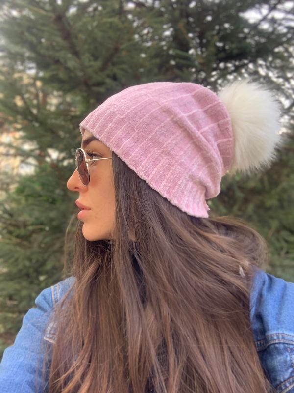 Шапка рожева з бумбончиком
