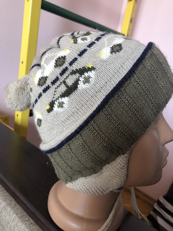 Шапочка двійної в‘язки з помпонами на зав’язках.