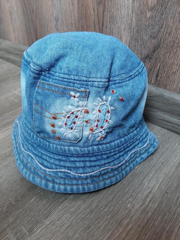 Очень яркая панамка из плотного хлопка денима. Хорошо садится. В идеальном состоянии т к было несколько панамок и кепок.