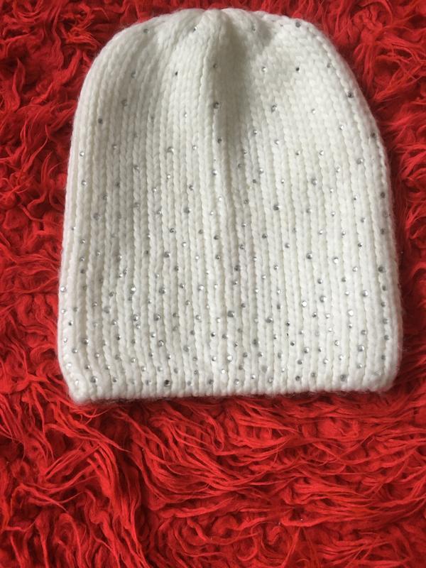 Замечательная шапочка со стразами. Беленькая шапочка со стразиками.