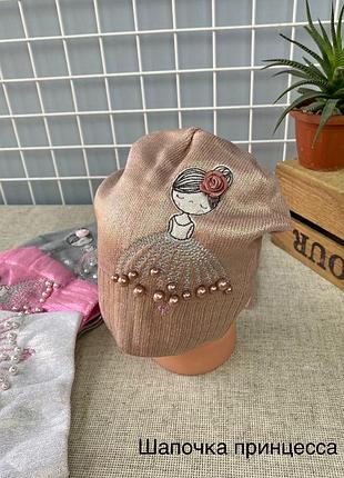 ✔ Супер стильная шапочка! Изготовлено в Украине! Бренд! Качество-люкс! Нежная и мягкая на ощупь. Украшена вышивкой в форме принцессы, жемчужинами - гвоздиками и объемным цветком! Верх- украшен специальным глитерным напылением- которое переливается на свету! Вязка! Состав: 100 % акрил ✔ Размер: 48-50 -2-6 лет