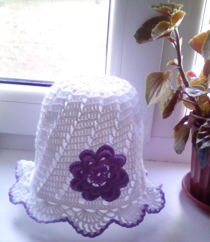 Панама новая для девочки Цвет белый,цветок сиреневый.Обхват 46 см,размер больше чем на 1 год,тянется