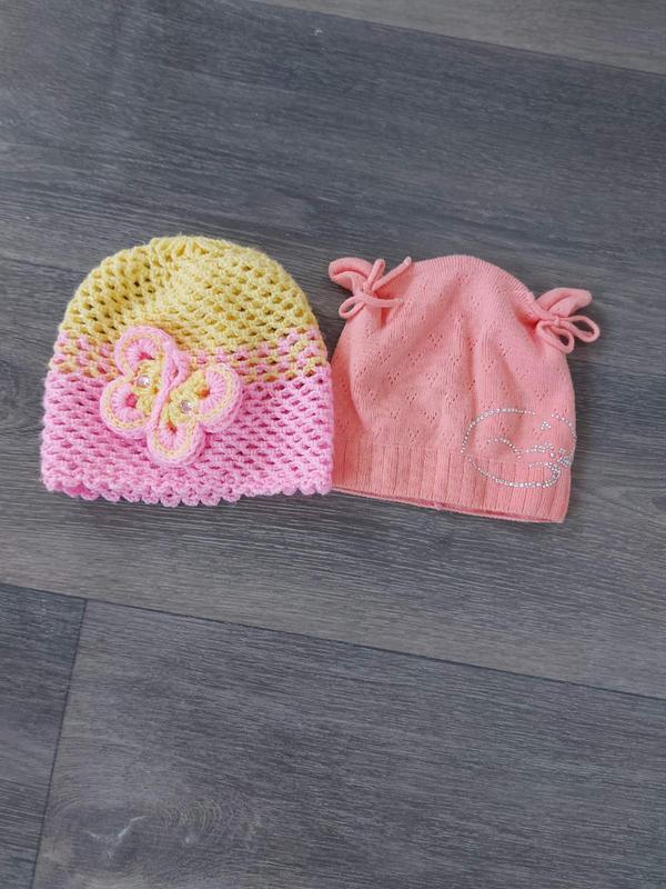 Лёгкие шапочки на весну, не колется. Одевали 1,5-2,5 года. Состоянии идеальное. Цена за набор.