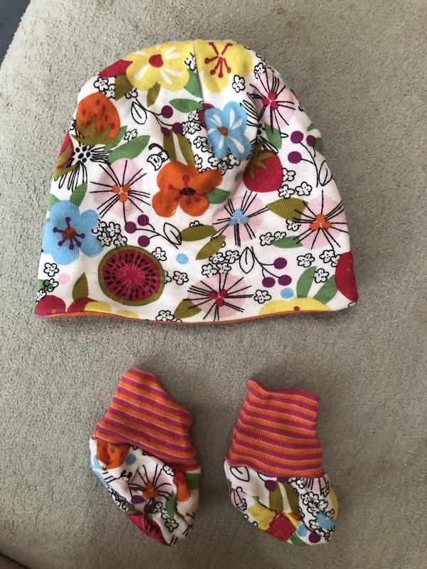 Двостороння шапочка з носочками на 0-3 місяці. Одягли 1 разів , коли з пологового будинку виписувалися. Дивіться інші мої оголошення, багато жіночих речей, дитячих, купальників, сумочок, підліткових речей. Продаю свої і дитячі речі, з яких виросли)