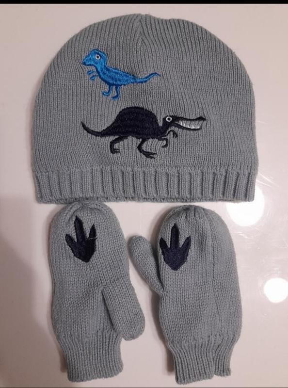 шапка та рукавичкі для хлопчика на вік 1-1,6рочки на флісі теплі стан ідеальний без дефектів