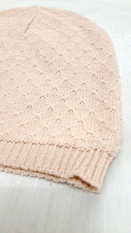Красивая шапочка, розовый нежный цвет, демисезонная, ажурная, на размер головы 55-59. Шапочка в идеальном состоянии. Шапочку можно закладывать на затылке в складу, как и многие аналогичные шапочки. Удобная для коротких и длинных волос. Диаметр 50см, растягивается до 60см. Высота 25см. Шапочка производстенная, по плотности вязки и по плотности нити больше подходит на сезоны осень-весна и на тёплую зиму. Акрил.