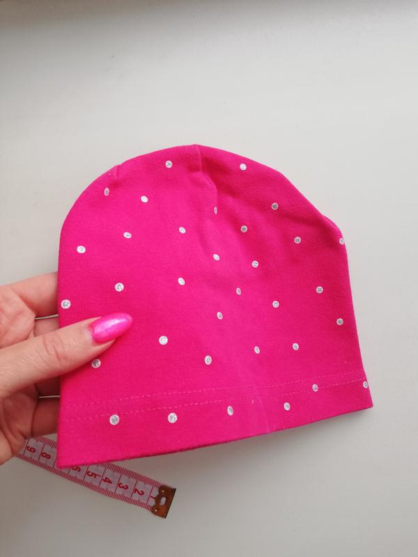 Яркая шапочка розового цвета в серебристый горошек 9-18 мес