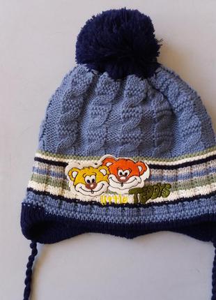шапка для мальчтка синього кольору з ведмедиками розмір 46-48 18 см ×22 см