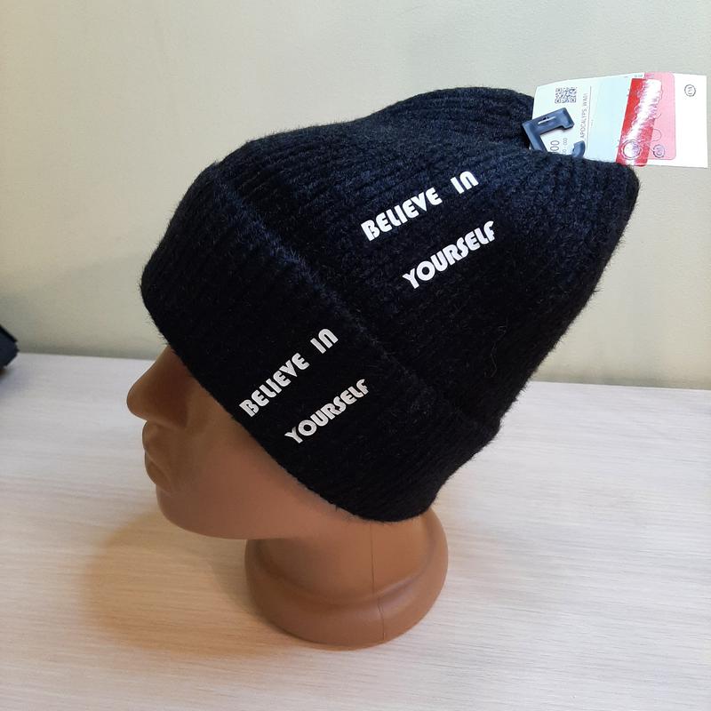 Шапка чорного кольору, товста, одинарна вязка ✔ширина півобхват23/висота22см 💬78% акрил, 18% поліамід, 3% поліестер 🏷C&A