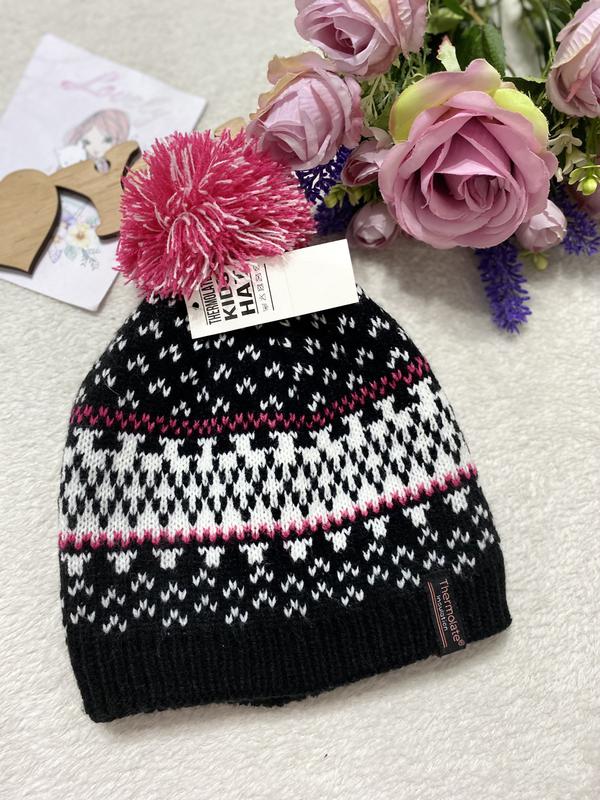 Тёплая шапочка на девочку. Германия. Внутри флисовая подкладка. 🍀будет на рост 122-158см