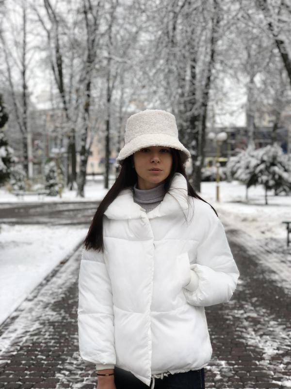 Шапка панамка зимняя, белого цвета, очень стильная, теплая