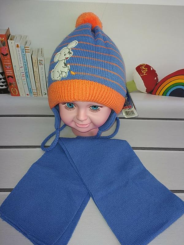 Зимний набор на мальчика, шапочка на утиплители и шарфик