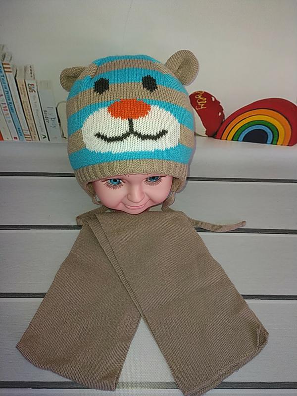 Зимний набор на мальчика, шапочка на утиплители и шарфик . Размер 44-46