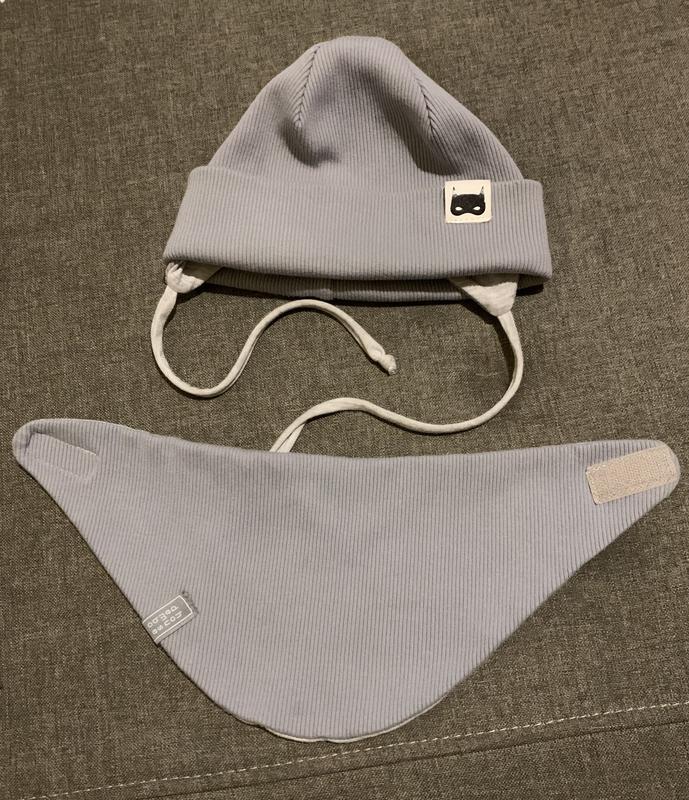 До набору входить шапка та слинявчик. Чудово підходить для активних діток, оскільки на шапочці присутні зав'язки. Шапка має широкий відворот та нашивку. Набір пошито з м’якого трикотажу. Відмінно зберігає форму та колір після прання. Склад тканини - Верх: 85% бавовна, 15% поліестер. Підкладка: 95% бавовна, 5% еластан. Завітайте до мене на сторінку, там ще багато цікавого)