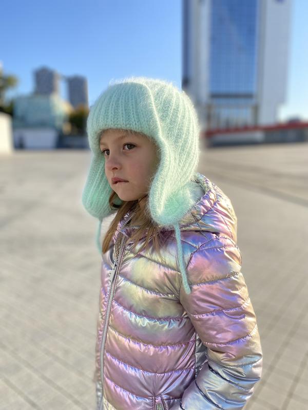 Тёплая зимняя шапка. Нежный мятный цвет. Очень мягкая и не колючая Состав пух кролика. Длинный ворс Хорошо сядет на объём 55-57