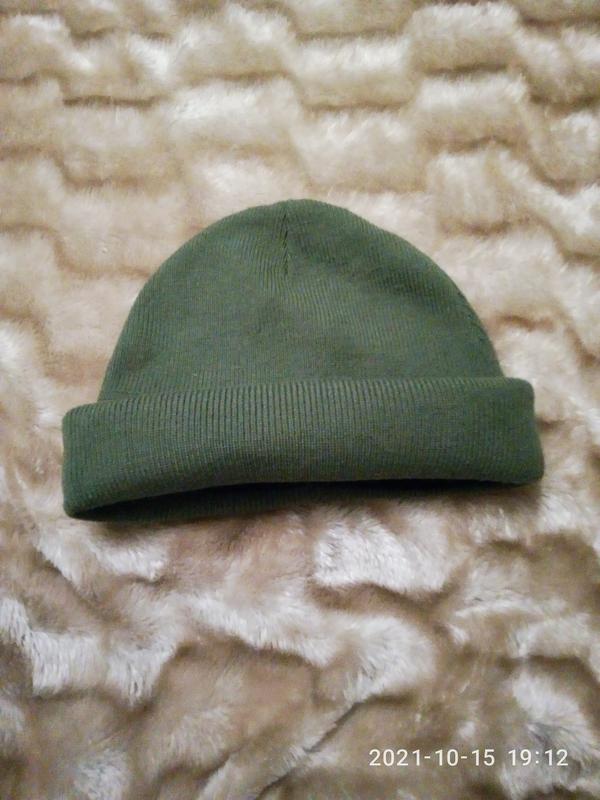 Новая шапка цвета хаки с утеплителем в районе лба.