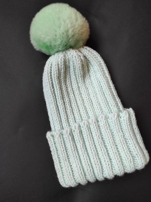 Шапка ручной работы, мягкая очень красивый мятный оттенок, натуральный помпон