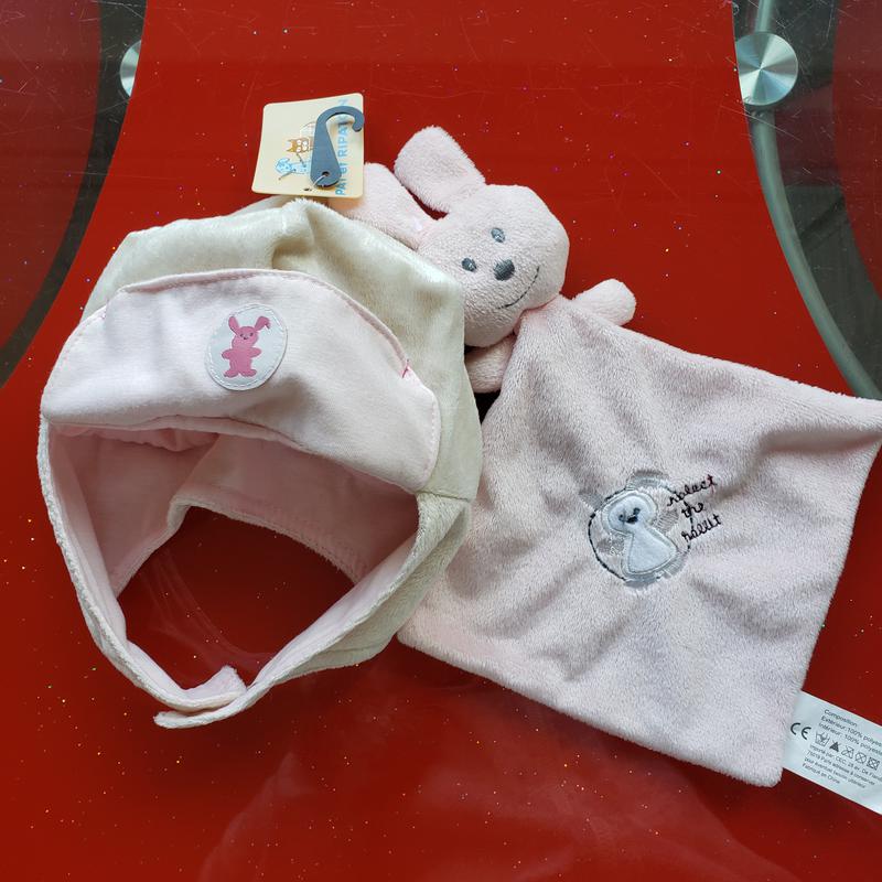 Игрушка комфортер девочке и шапка деми 48р 9-12-18м 74-80-86см новый набор