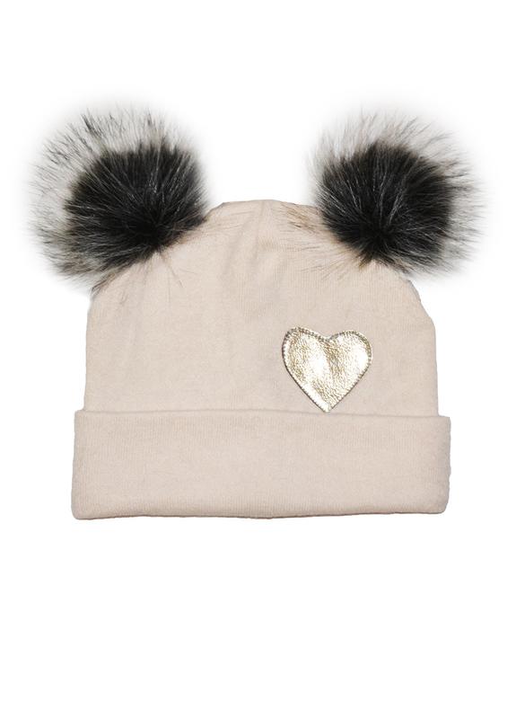 Шапка зимняя на девочку с сердечком бежевая 52/54