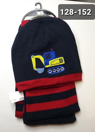 шапочка+шалик Тепленький комплект для хлопчика чудово підійде на холодну осінь/весну, або теплу зиму. на бірці 128-152, підійде на обхват голови 52-54