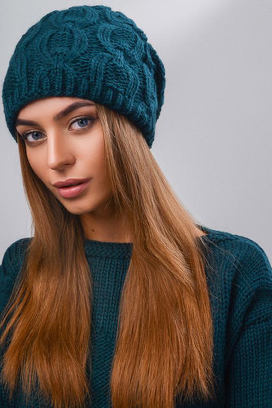 Вязаная шапка узором "цепочка" - 26817-18 изумруд
