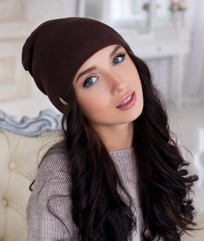 Стильная осенняя шапка "магнетик" - 4222 коричневый