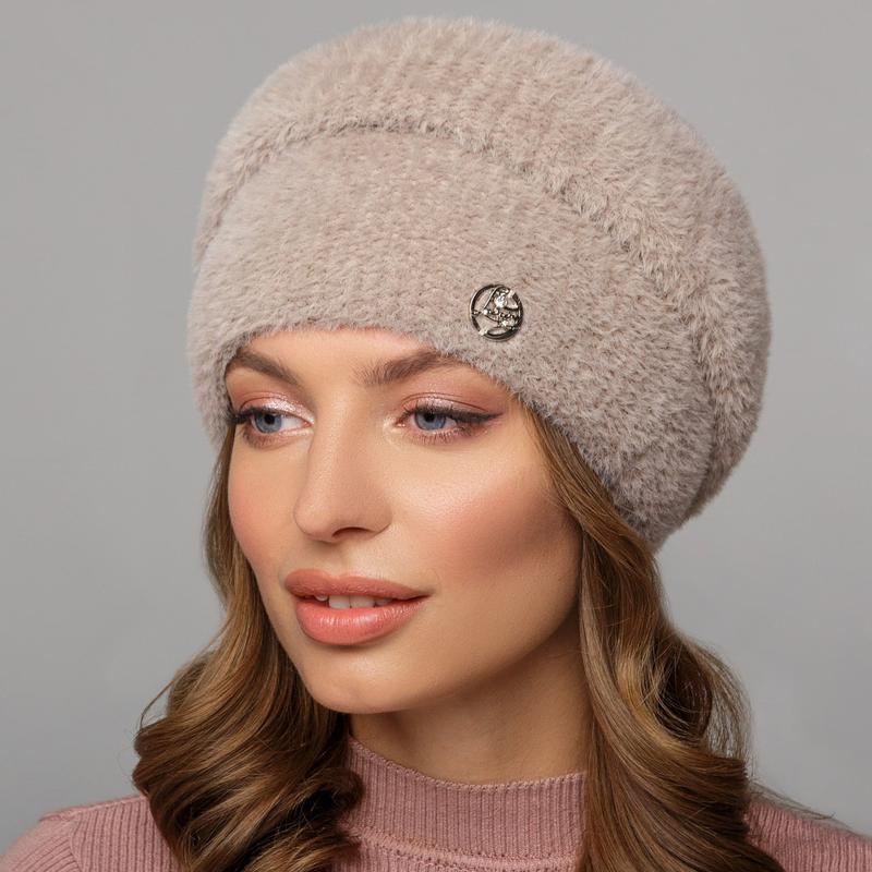 Шапка селин с пышным ободком 0411 мокко