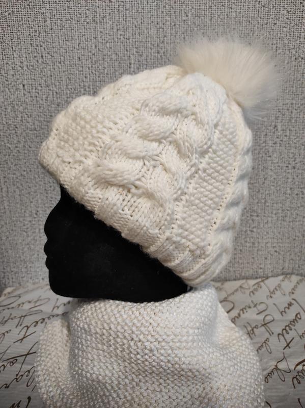 Шапка теплая, с пампоном белого цвета подклад на флисе цена шапки 350.00 цена рукавичек 200.00
