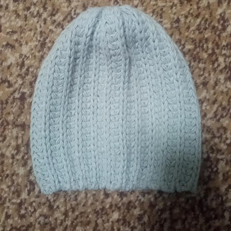 шапка для дівчинки 54-56 розмір. колір - сіро-блакитний велика в'язка. Заходьте на мою сторінку, є багато цікавих речей, різних розмірів.