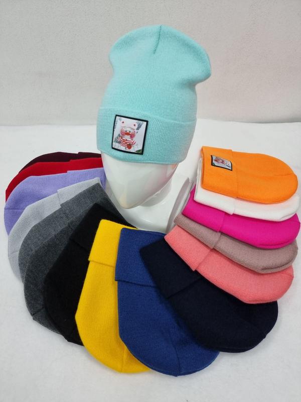 Шапка одинарная Замеры: Высота 23 см+ 8 см. отворот, ширина 22 см. Состав: 50% хлопок, 50% акрил Размер: 44-56.