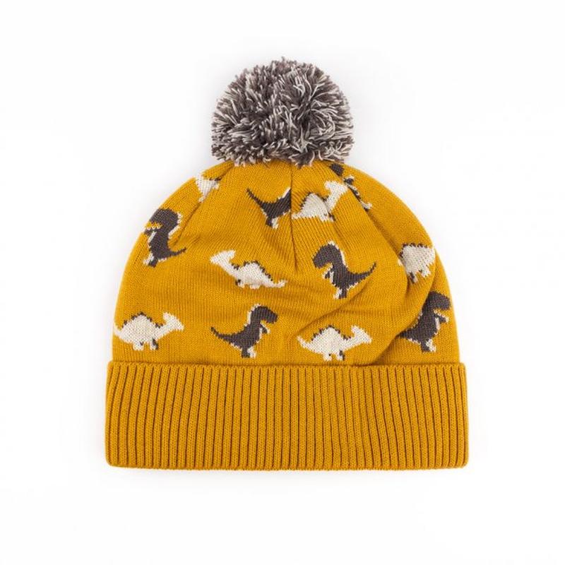 Размер 48-50 и 52-54, большемерит Цвет ниток помпона может отличаться от того что на фото! Вязаная шапочка с динозаврами на мальчика. Шапочка подшита флисом и декорирована помпоном. Состав: 50%-шерсть, 50%-ПАН. Подклад-термофлис