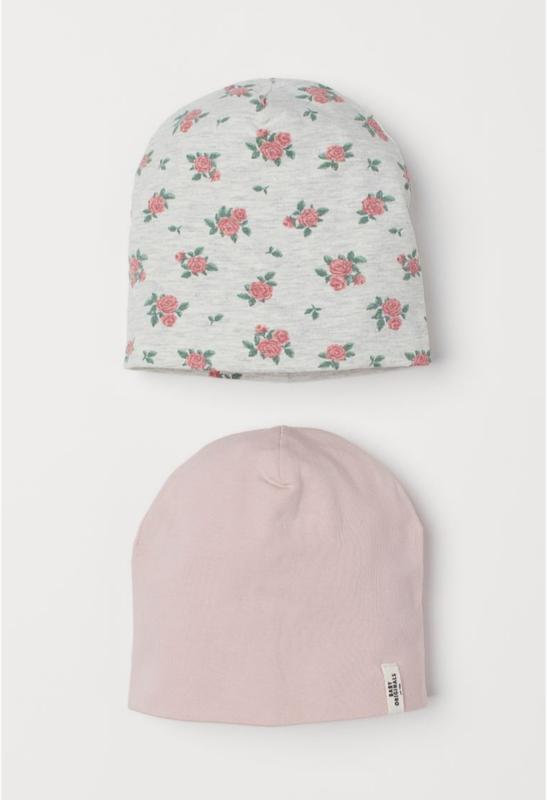 Подвійна шапка трикотажна шведського бренду H&M. Колір - рожевий, сірий. Ціна вказана за 1 шапку. Склад: 95% бавовна, 5%еластан. Розмір в наявності 6-12міс, 1-2, 2-4 роки