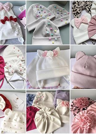 Ціна вказана за 1 шапку До кожної шапки можна додати хомут , чи шарф. Ціни на шарфи уточнюйте. Шапочка з трикотажу, тканина добре тягнеться . Розміри шапки від 0-3 міс до 8 років .