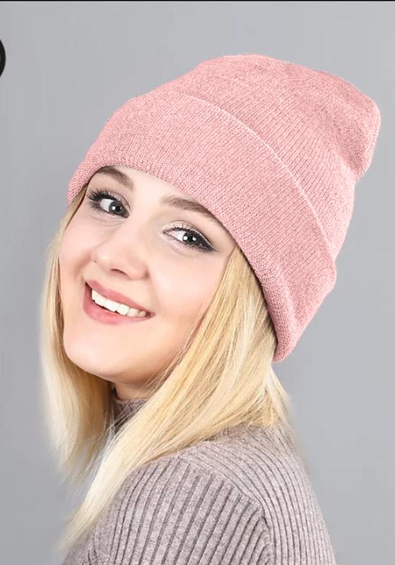 Шапка бини с отворотом, можно одевать без. Высота 21см (без отворота 26см), ширина 18см. На объем головы 53-58см.