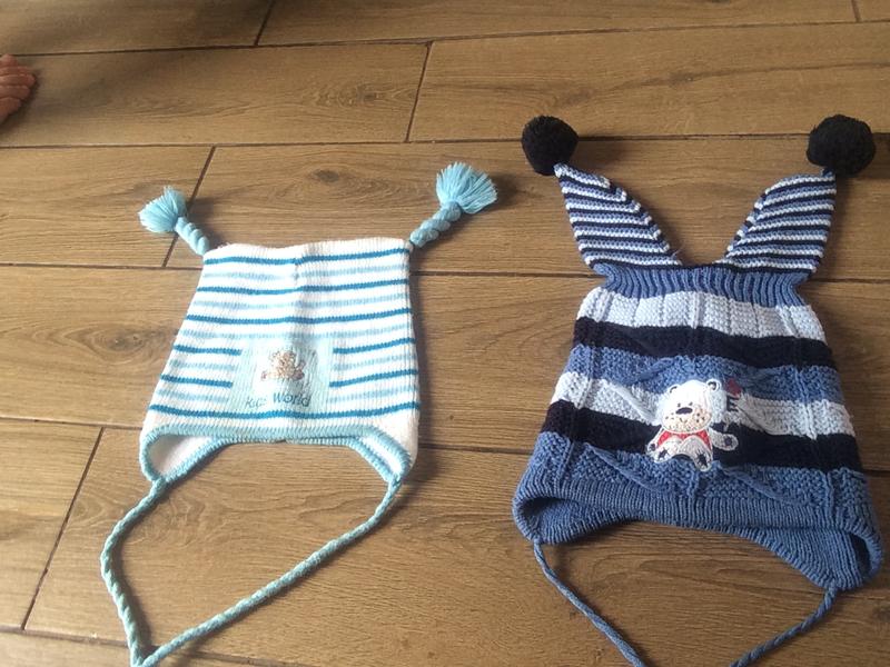 Яркие милые шапочки ! На 2-3 года ! ! Темная двойная ! Ширина 20 см глубина 16 см ! Светлая одинарная ! Ширина 20 см глубина 17 см ! Цена за одну