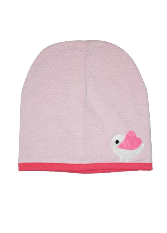Шапка девочкам 6 месяцев - 3 года с птичкой розовая 46/50