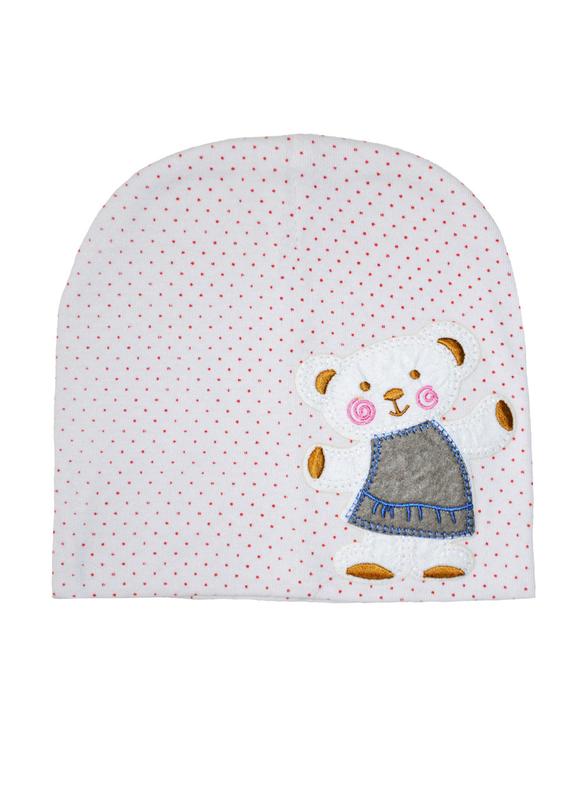 Шапка для девочки 6мес.-3г. в горошек с мишкой 46/50