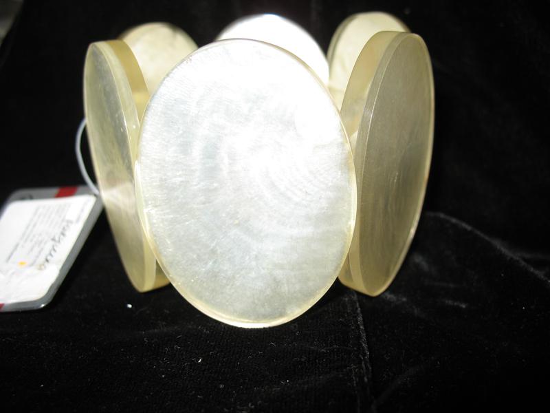 Браслет "Некст Спа Віа Монте..." ИТАЛИЯ Цвет - БЕЛЫЙ (на фото вышел почему- желтым). БЕЛЫЙ ПЕРЛАМУТР НОВЫЙ. Бирка. Диаментр примерно 5,8 см. ТЯНЕТСЯ. ОБЛЕГАЕТ по руке хорошо.