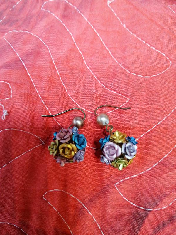 Серьги висюльки металл цветы