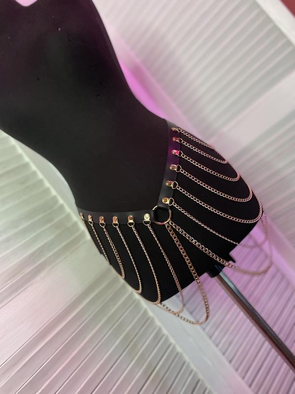 Материал эко кожа Размер регулируется Так же делаем индивидуально по вашим меркам до талии 66 см Качественная фурнитура Цепочка: золото Цвета: красный/белый/черный