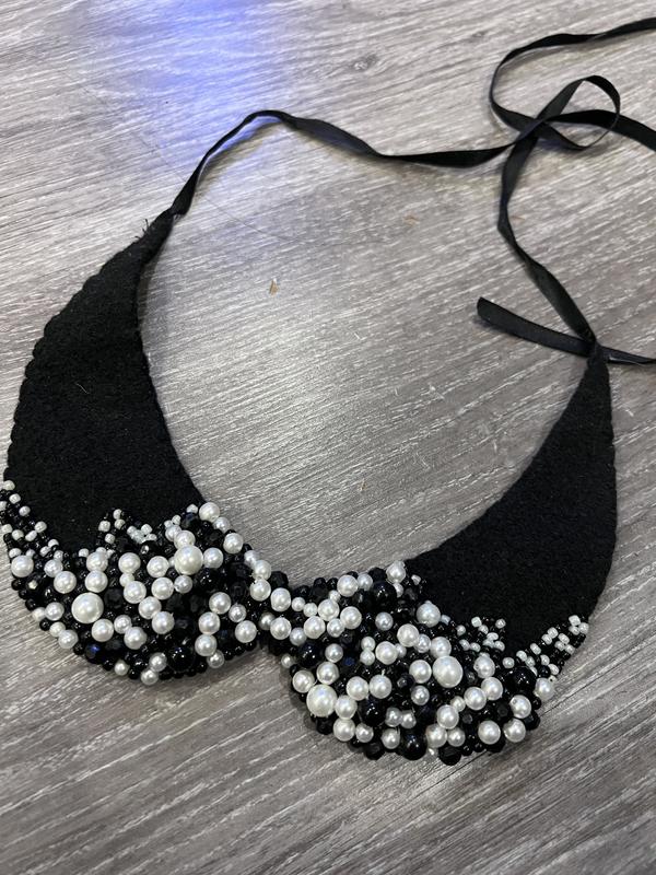 Съемный воротничок, расшитый жемчужинками и черными камушками