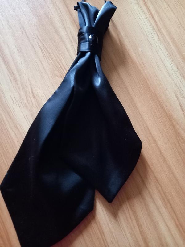 коротенький жіночий,атласний галстук чорного кольору який нададає для жінки святковості в її вбранні. Галстук оздоблений камінцем.23см довжинрю