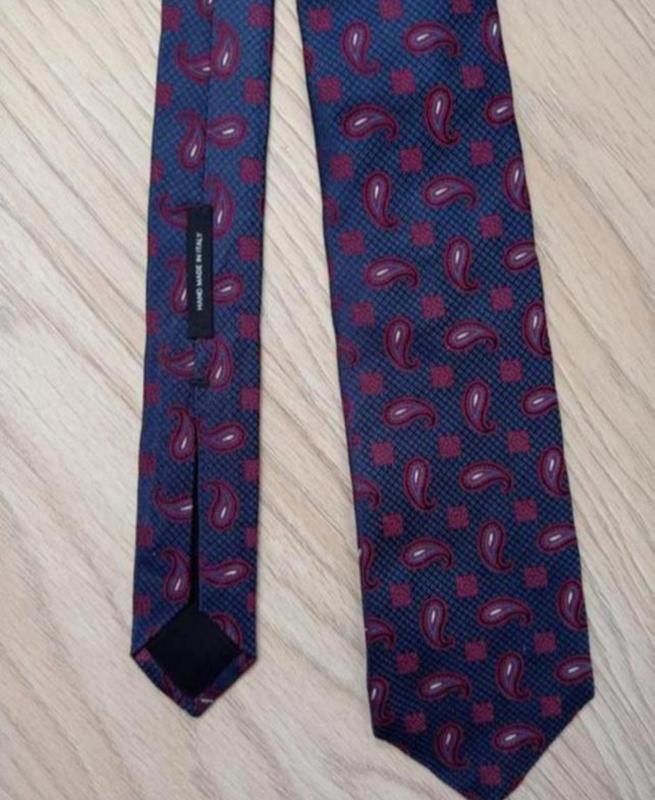 Стильный мужской галстук, сочетание серого, синего,черного цвета,в принт. Бренд - HUGO BOSS. Италия. Материал -100% шелк, подклад -100 % купро. Ширина у самому низу: 8 см.