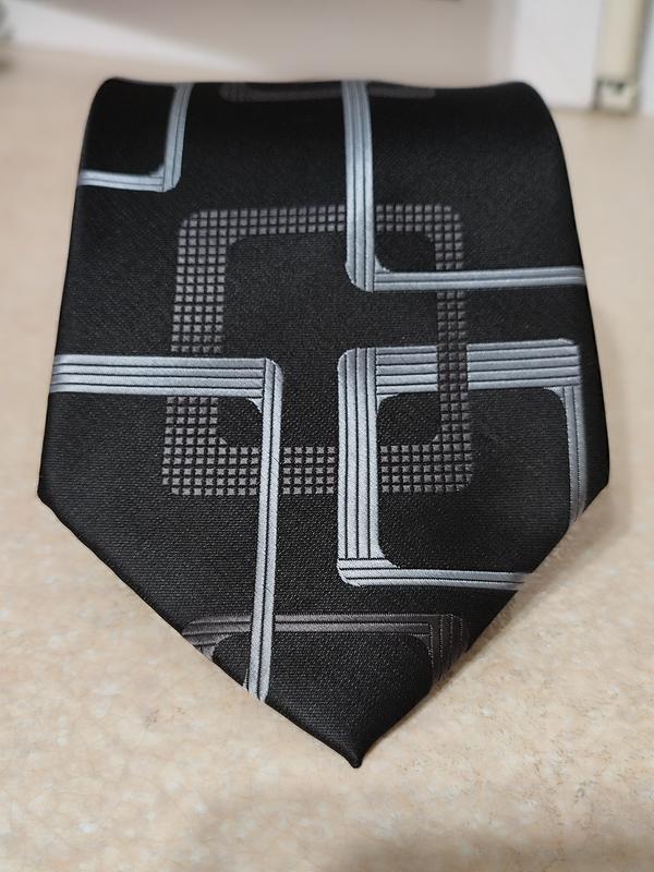 Стильная широкая черная с серым галстуком George длина 150 см, ширина 10 см цвета на галстуке: черный, серый, серебристый (серый с отливом) сток