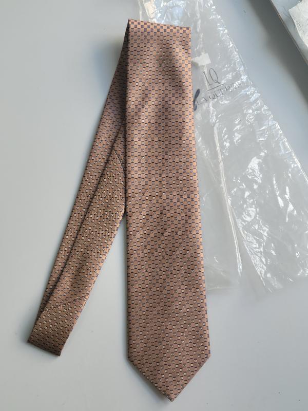 Продам новый галстук французского бренда La Querre. Имеет магазинную упаковку, поэтому отлично подойдет и в качестве подарок. Очень красивого качества, при свете рисунок ткани переливается. Также имеет нейтральный рисунок, который подойдет многим образам. Размеры: Длина - 149.5 см Ширина в самом узком месте - 4 см Ширина в самом широком месте - 8 см. Состав: Шовк - 72% Вискоза - 28%
